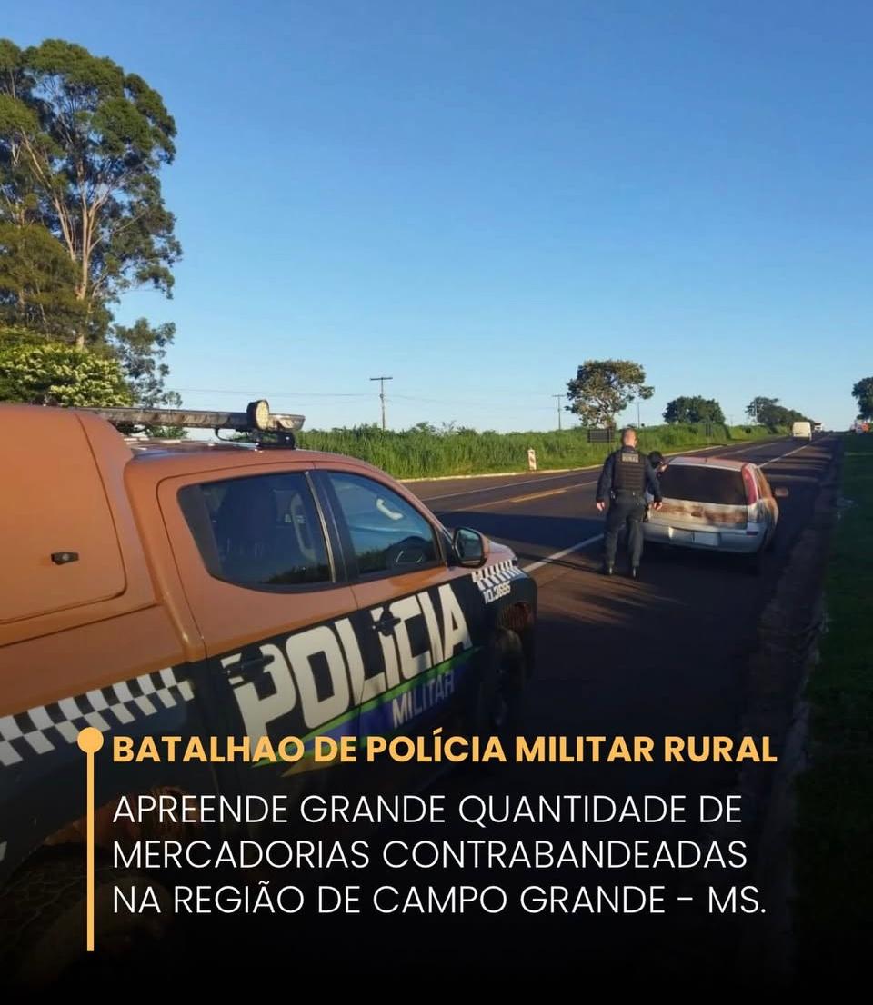 Na manhã de terça-feira (10), durante ações da Operação Falcão I/2026, a Polícia Militar Rural realizou a apreensão de uma grande quantidade de mercadorias de origem estrangeira, em tese oriundas do Paraguai, durante patrulhamento em estradas vicinais da zona rural de Campo Grande – MS.