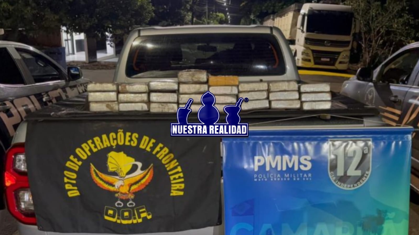 Ação conjunta entre policiais do DOF (Departamento de Operações de Fronteira) e da PM (Polícia Militar) de Camapuã resultou na apreensão de 27,1 quilos de cocaína, que eram transportados em uma caminhonete Toyota Hilux, no sábado (28/3), na BR-060. Um homem de 52 anos e uma mulher de 48, foram presos em flagrante.