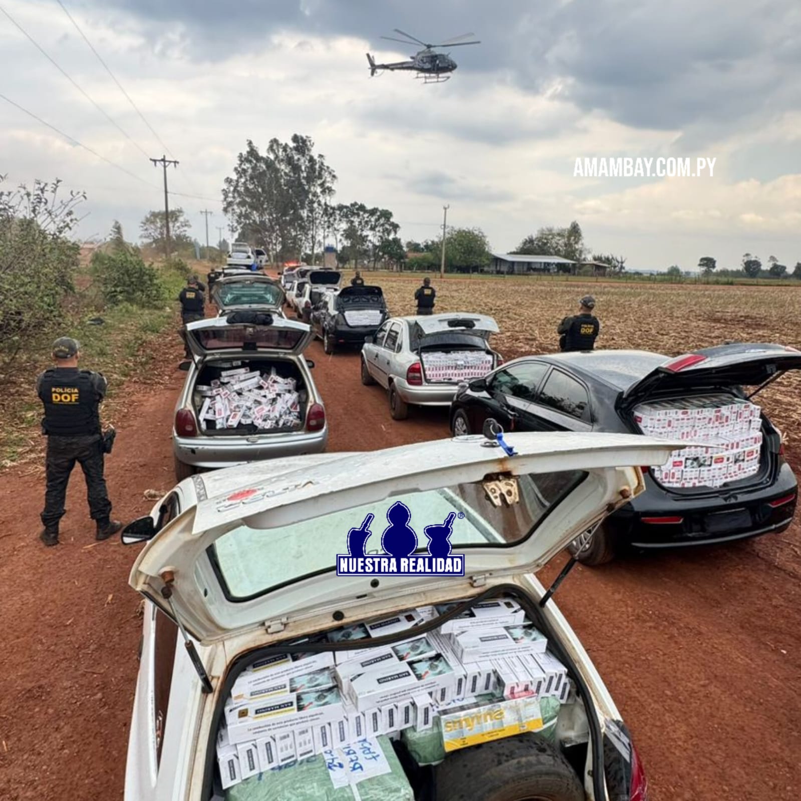 Com o apoio de uma segunda equipe do Departamento, do helicóptero Harpia do DOF e policiais da CGPA (Coordenadoria Geral de Policiamento Aéreo), outros sete veículos foram encontrados em um canavial próximo, onde cinco pessoas também foram detidas.