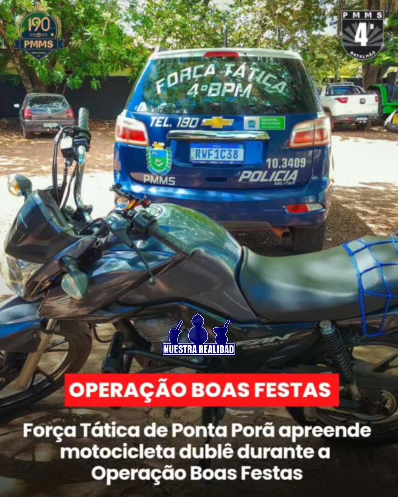 Em uma vistoria preliminar, os dados aparentes da motocicleta coincidiam com os registros do sistema oficial. No entanto, em continuidade às diligências, os policiais entraram em contato com o proprietário cadastrado do veículo, que informou estar, naquele momento, de posse de sua motocicleta original. Por meio de videochamada, foi possível confirmar que placa, chassi e número do motor do veículo original coincidiam integralmente com os dados oficiais, evidenciando que a motocicleta abordada se tratava de um veículo dublê.