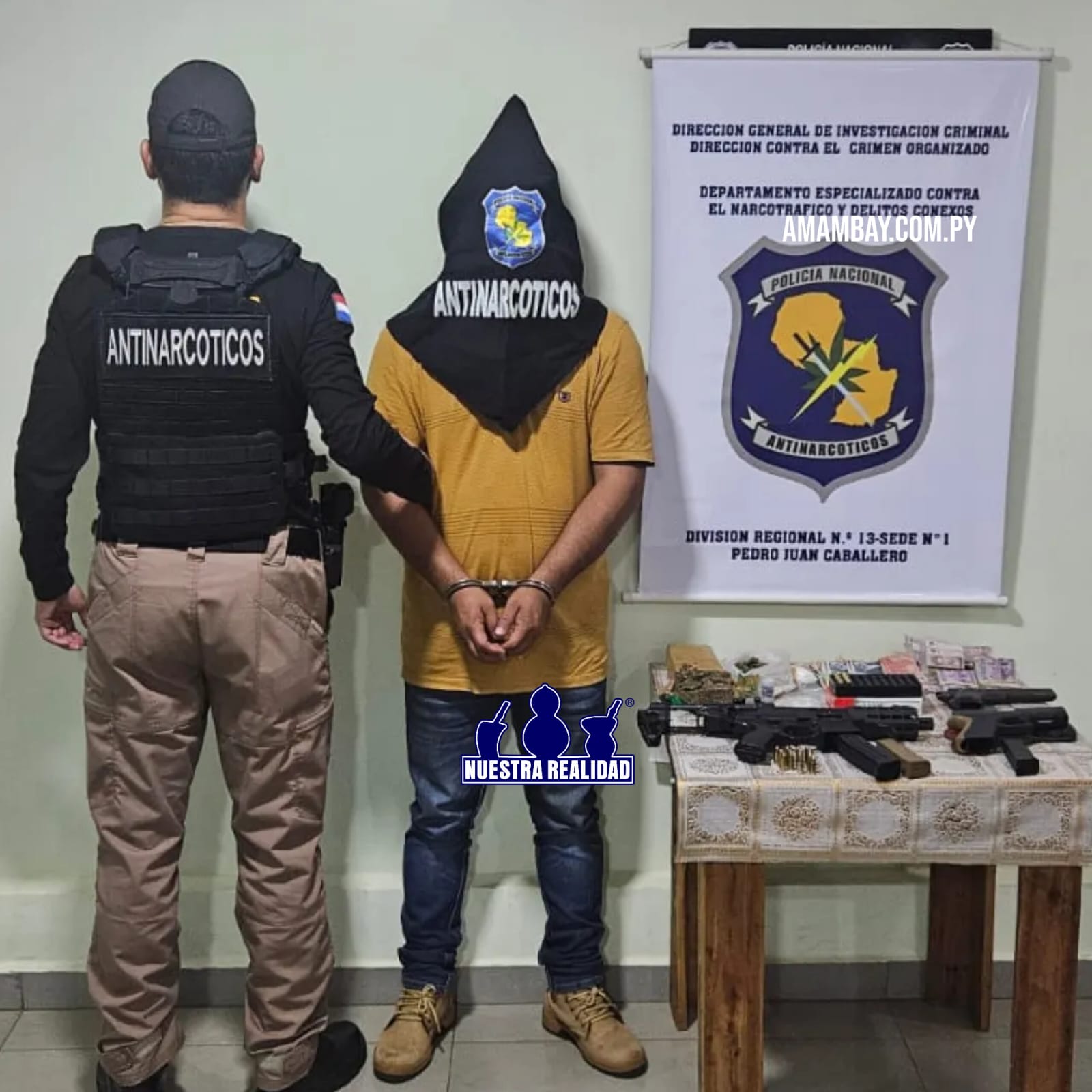 Por orden del fiscal Celso Morales, Fernández quedó detenido y las evidencias fueron trasladadas hasta la oficina regional del Departamento Antinarcóticos de Pedro Juan Caballero.