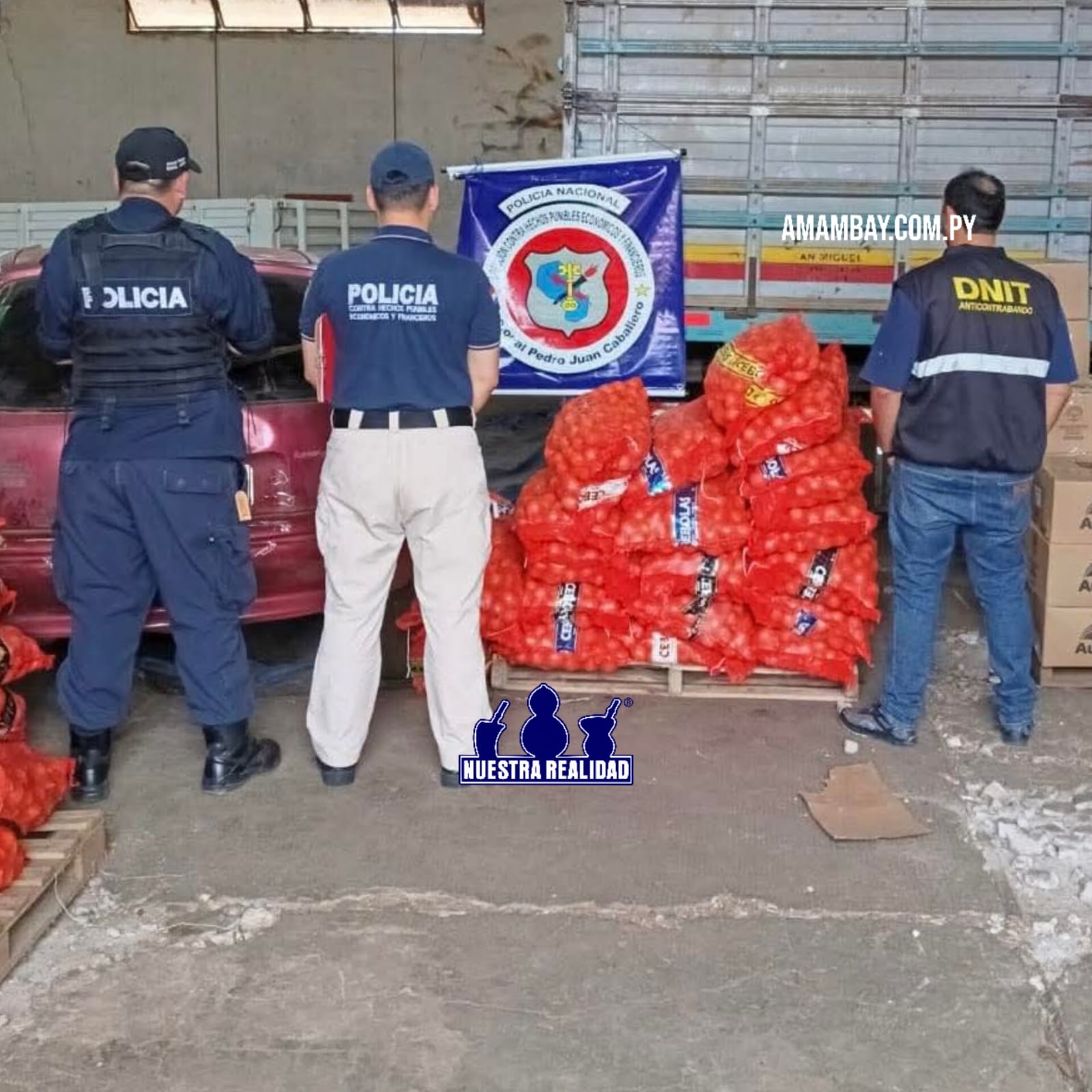 Durante un control rutinario realizado en el Cruce Bella Vista,, agentes de la Dirección Contra Hechos Punibles Económicos y Financieros del Departamento de Amambay, junto con personal del DNIT, incautaron una importante carga de alimentos que no contaba con documentos legales.