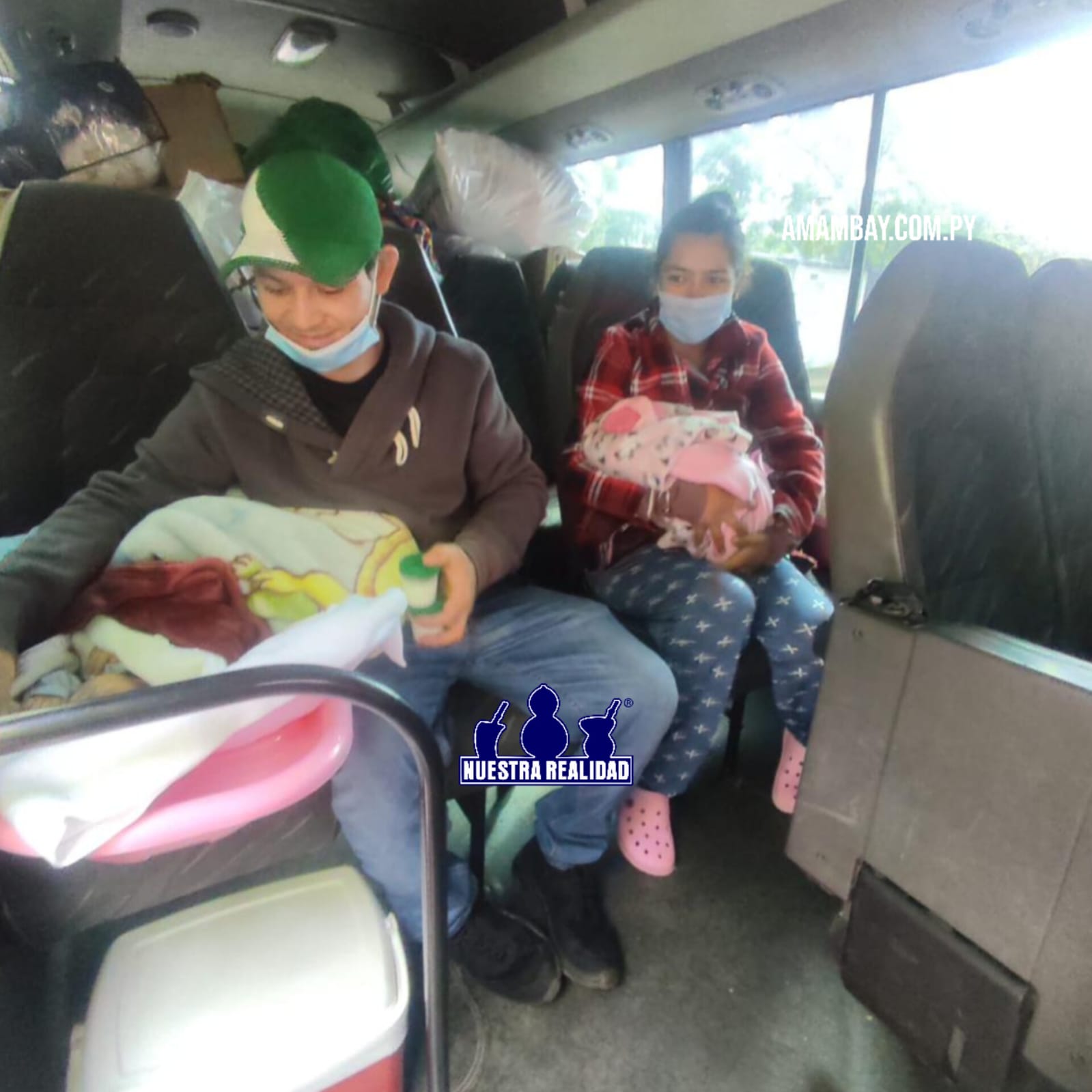 En un emotivo momento, la familia de los trillizos Estefany, Esteban y Eduardo fue trasladada hoy desde el Hospital de Clínicas hasta su hogar en Pedro Juan Caballero, en un minibús del Comando Logístico de las Fuerzas Armadas de la Nación.