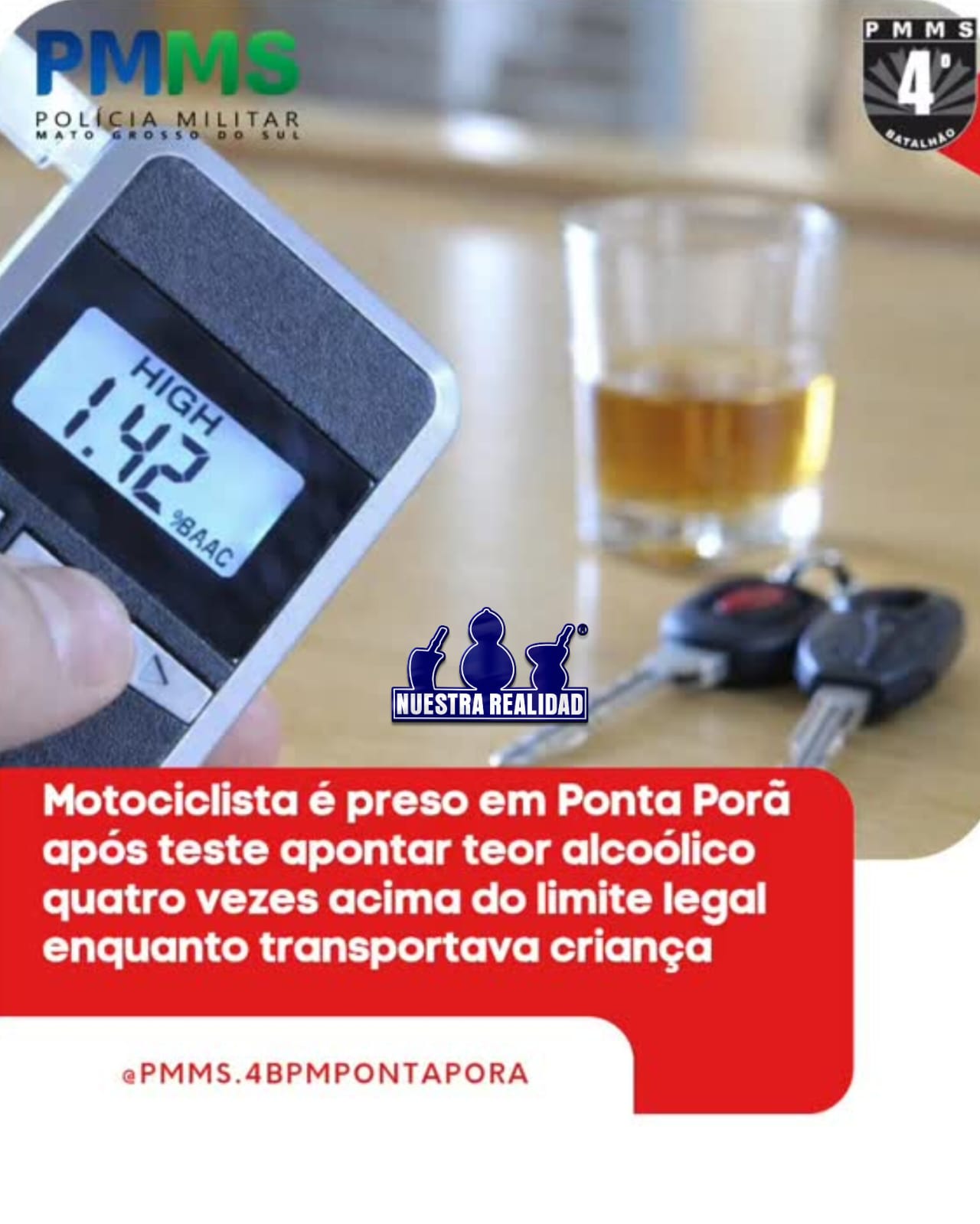 Ponta Porã (MS) – Um motociclista foi preso no sábado (21), no bairro São João, em Ponta Porã, após ser flagrado conduzindo veículo sob efeito de álcool e transportando uma criança de seis anos de idade na garupa.