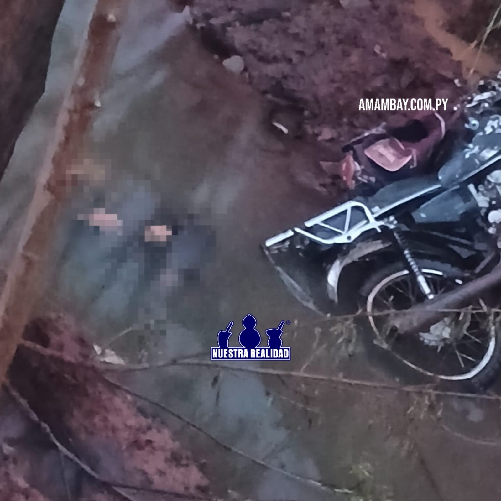 COLONIA SANTA CLARA, Cerro Corá: Noticia ampliada sobre un accidente de tránsito con derivación fatal que se registró ayer domingo por la mañana, cuando un motociclista cayó al cauce hídrico de un arroyo en un sector donde el puente se encuentra en reparación.