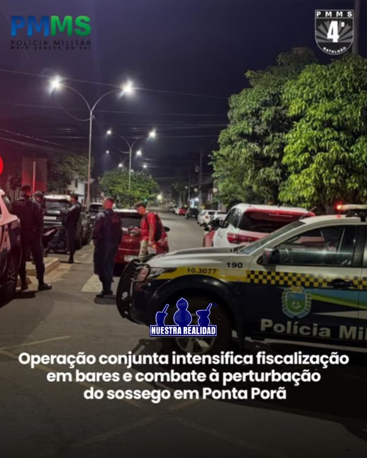 Uma operação conjunta realizada em Ponta Porã reuniu equipes da Polícia Militar, por meio das viaturas de Trânsito, Força Tática, Rádio Patrulha Norte e Rádio Patrulha Sul, além do apoio da Secretaria Municipal de Meio Ambiente, com o objetivo de reforçar a fiscalização em bares da cidade e orientar proprietários e frequentadores.