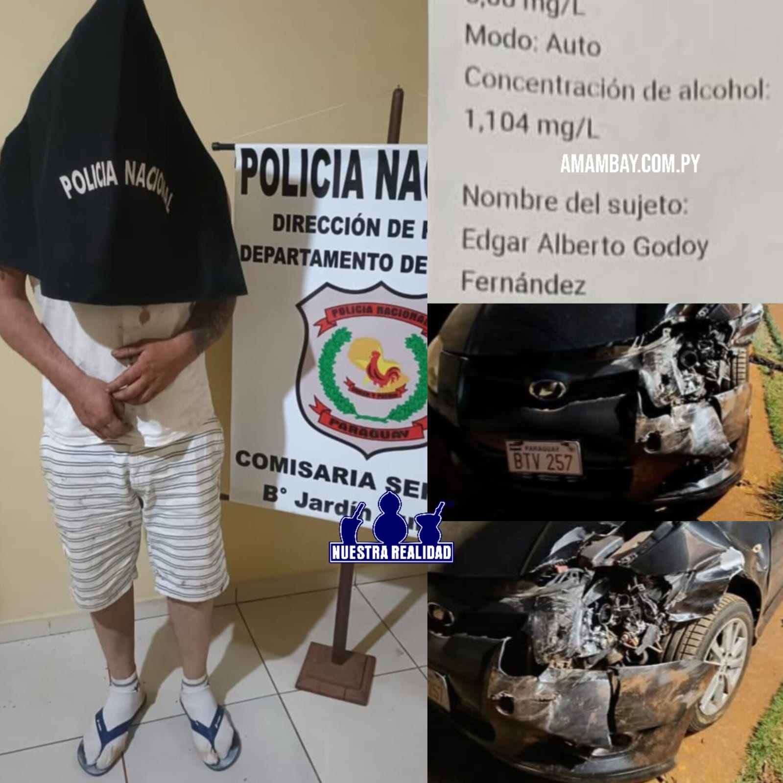 Un hombre de 35 años, identificado como Edgar Alberto Godoy Fernández, fue detenido por la policía tras causar un accidente de tránsito en el barrio Jardín Aurora y dar positivo en la prueba de alcoholemia. El incidente ocurrió alrededor de las 21:30 horas de ayer miércoles 10 de septiembre en la calle Augusto Zelada.