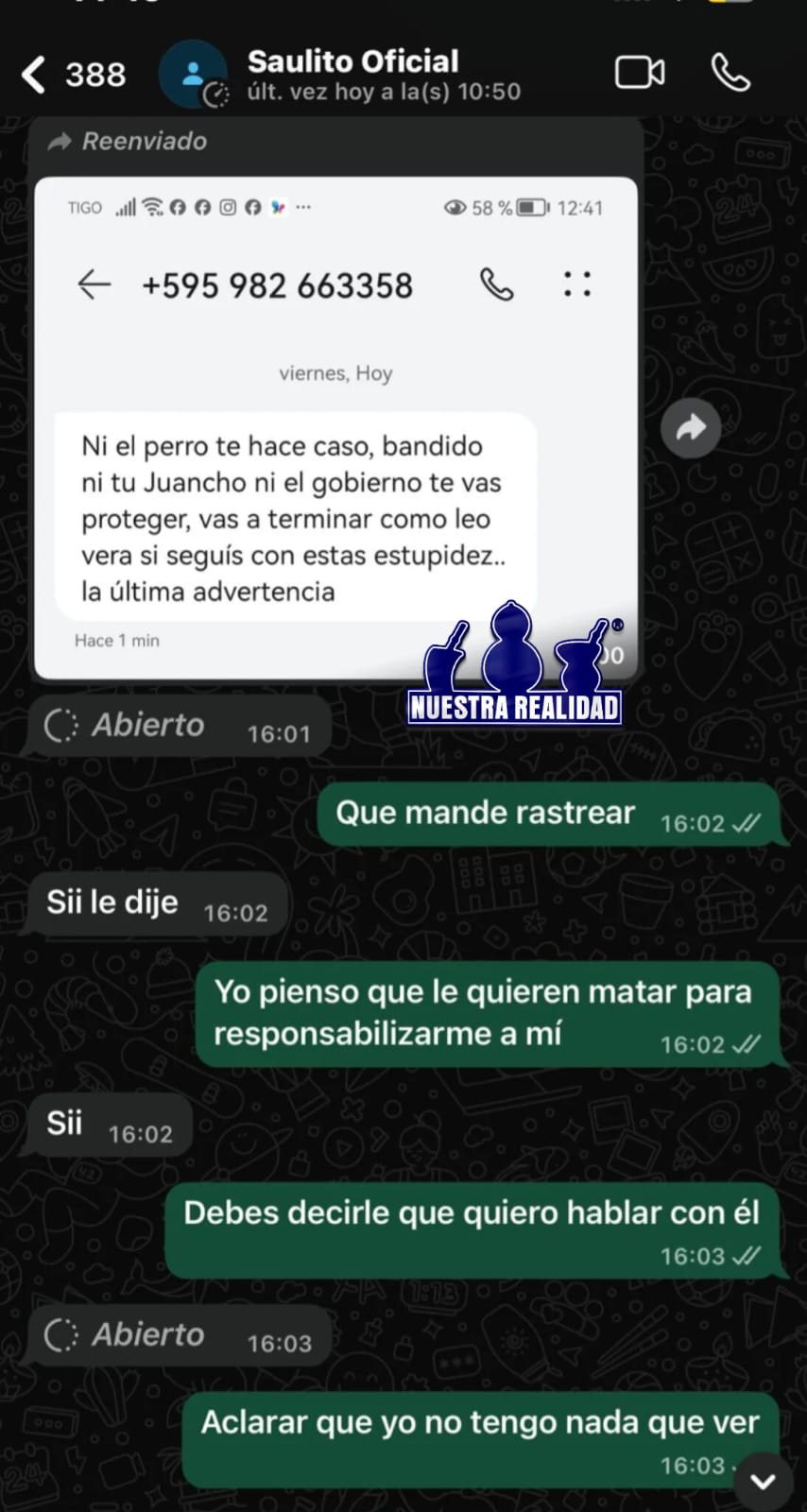 La fiscal Zully Figueredo confirmó que el allanamiento se realizó tras una denuncia de amenaza de muerte denunciada por el periodista. “Se pudo corroborar a primera vista que el número telefónico utilizado por este señor, Saúl Ruiz Gauto, estaría vinculado a los mensajes que habría recibido este periodista en varias oportunidades”, explicó la agente. Durante el procedimiento, se incautaron varios dispositivos electrónicos, como teléfonos, pendrives, y tarjetas SIM, que serán analizados para continuar con la investigación.