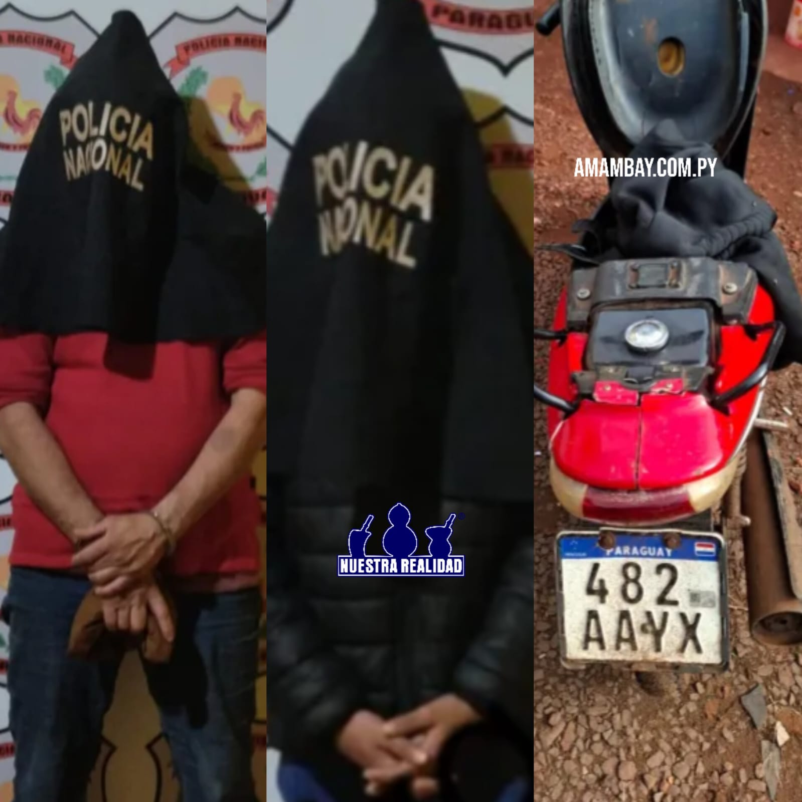 Los agentes iniciaron las investigaciones revisando imágenes de circuito cerrado, lo que les permitió observar las características de los supuestos autores. Seguidamente, visualizaron a dos personas con vestimentas similares a bordo de una motocicleta Leopard, HB110 BUZZ, color rojo, con chapa N° 482AAYX. Al notar la presencia policial, intentaron darse a la fuga, pero fueron rápidamente alcanzados y reducidos.