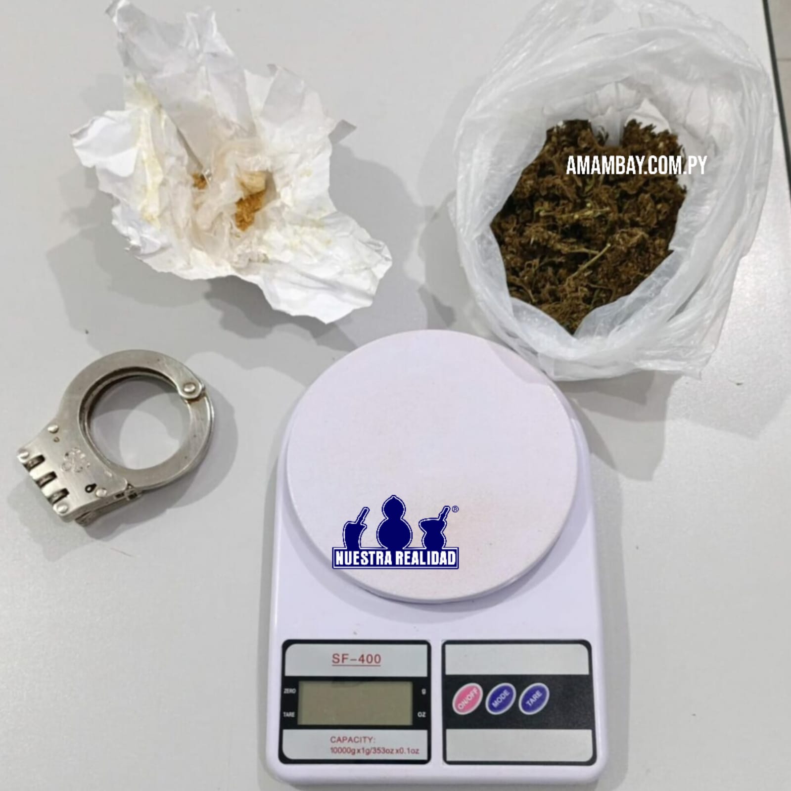 Durante a busca, os policiais localizaram aproximadamente 12 gramas de crack, 37 gramas de maconha e uma balança de precisão, escondidos no teto do interior da casa.
