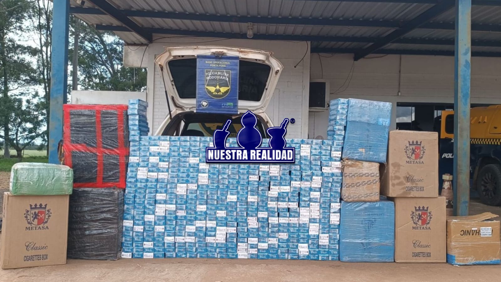Durante vistoria no interior do automóvel, os policiais localizaram diversos produtos de origem estrangeira sem documentação fiscal, entre eles 650 pacotes de cigarros, perfumes, cigarros eletrônicos e carregadores de celular.