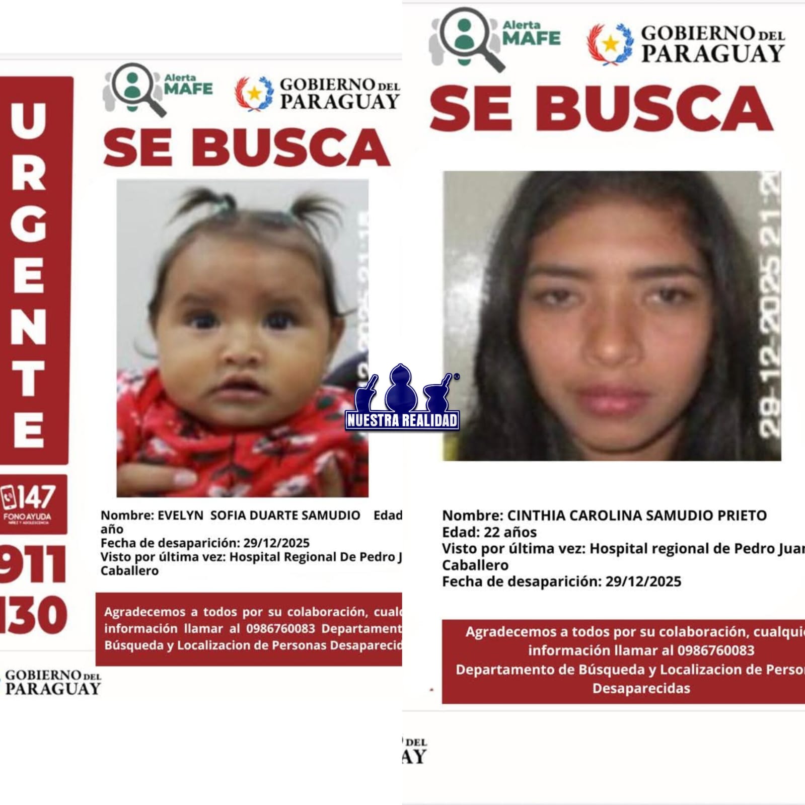 Las personas buscadas son Evelyn Sofía Duarte Samudio, de apenas 1 año de edad, y Cinthia Carolina Samudio Prieto, de 22 años.