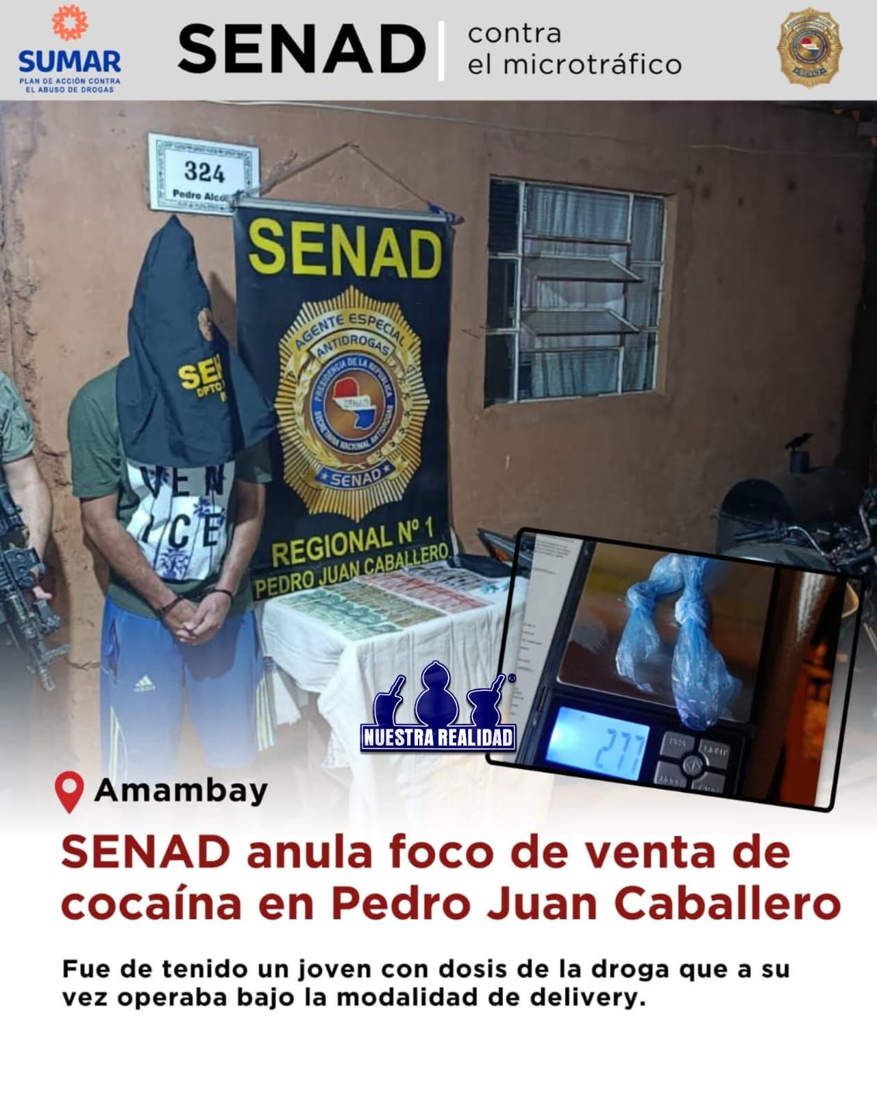 La Secretaría Nacional Antidrogas (SENAD) intervino el miércoles, alrededor de las 19:50 horas, un foco de venta de cocaína en Pedro Juan Caballero, tras recibir informaciones de inteligencia.