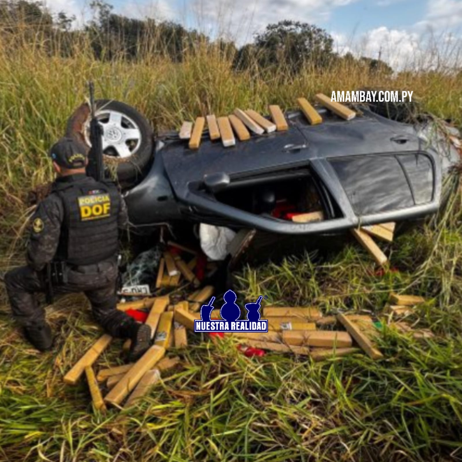 Com o acidente, diversos tabletes de maconha ficaram esparramados na vegetação. Ao todo, foram apreendidos 865 tabletes, que após a pesagem totalizaram 857 quilos.