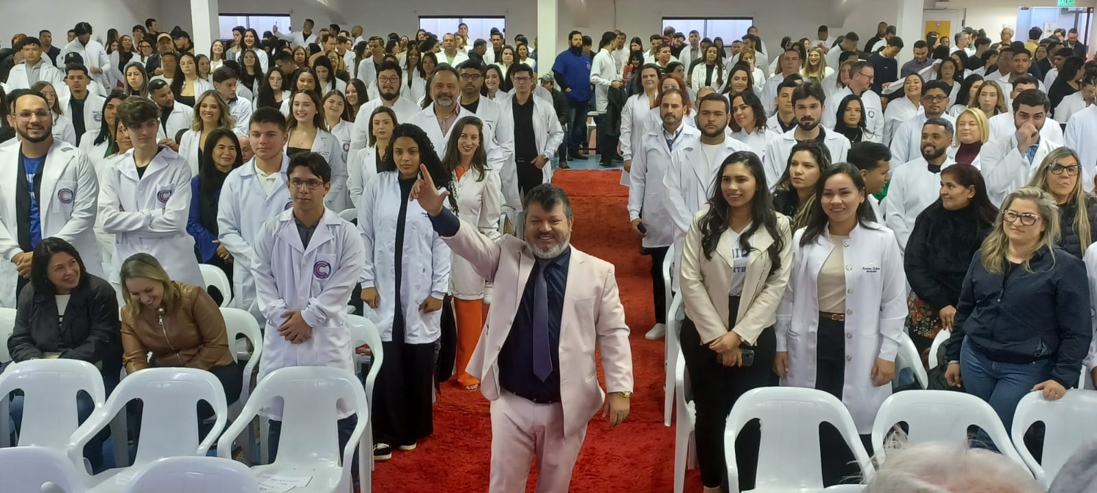 A Universidade Central do Paraguai em Pedro Juan Caballero recepcionou, na manhã desta quarta-feira, 30, a turma 2025.2 da instituição. Os futuros médicos foram acolhidos em evento cultural realizado no Centro Tecnológico, onde mais de seiscentos calouros foram recebidos em alto estilo, marcando assim o início da nova etapa na vida de cada um dos futuros médicos.